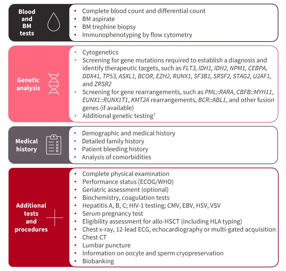 Figure 3. ELN recommended tests and procedures at diagnosis for patients with AML*