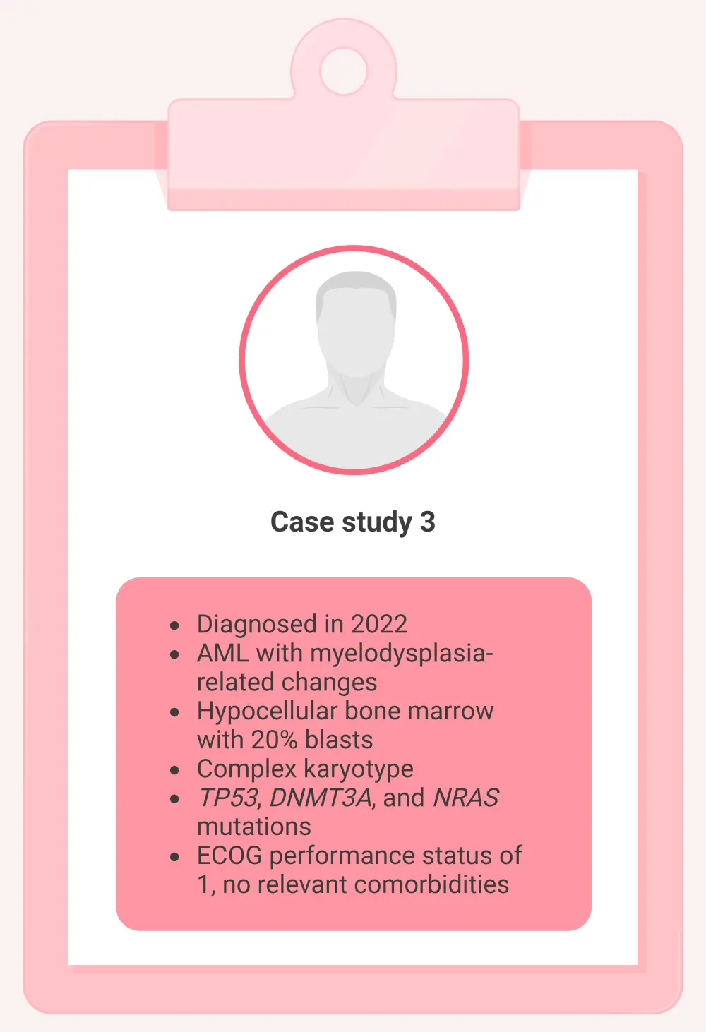 AML, acute myeloid leukemia; DNMT3A, DNA methyltransferase 3 alpha; ECOG, Eastern Cooperative Oncology Group; NRAS, neuroblastoma RAS viral oncogene homolog; TP53, tumor protein p53.