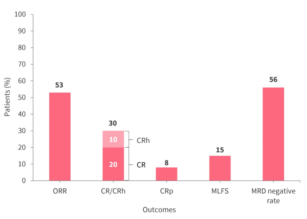 CR, complete remission; CRh, complete remission with partial hematologic recovery; CRp, complete remission with incomplete platelet recovery; MLFS, morphologic leukemia-free state; MRD, measurable residual disease; ORR, overall response rate.