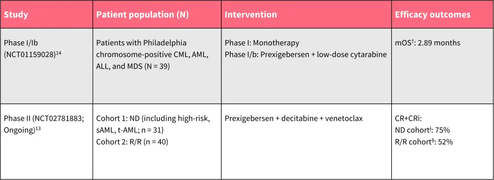 Table 2. Overview of clinical safety and efficacy of prexigebersen in AML*