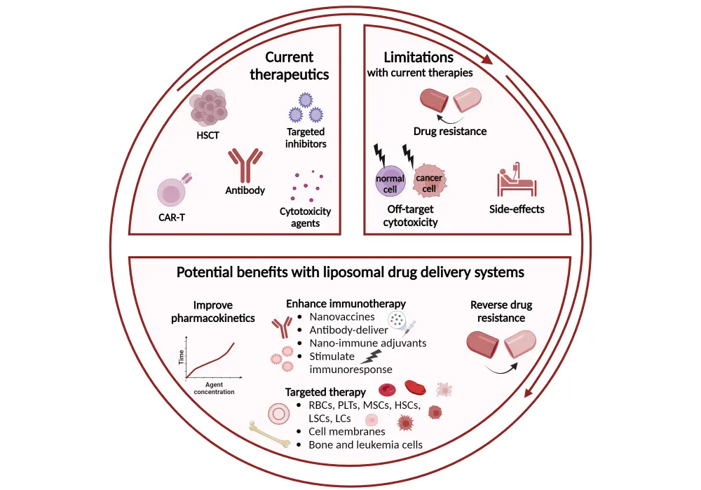 To address current treatment gaps in AML, novel nanotechnologies—including liposomes, metallic nanoparticles, dendrimers, micelles, lipid nanoparticles, and polymeric nanoparticles—have emerged as promising approaches.3 Notably, liposomes are the first nanomedicine delivery system to progress from concept to clinical application and have been successfully adopted in clinical settings.1