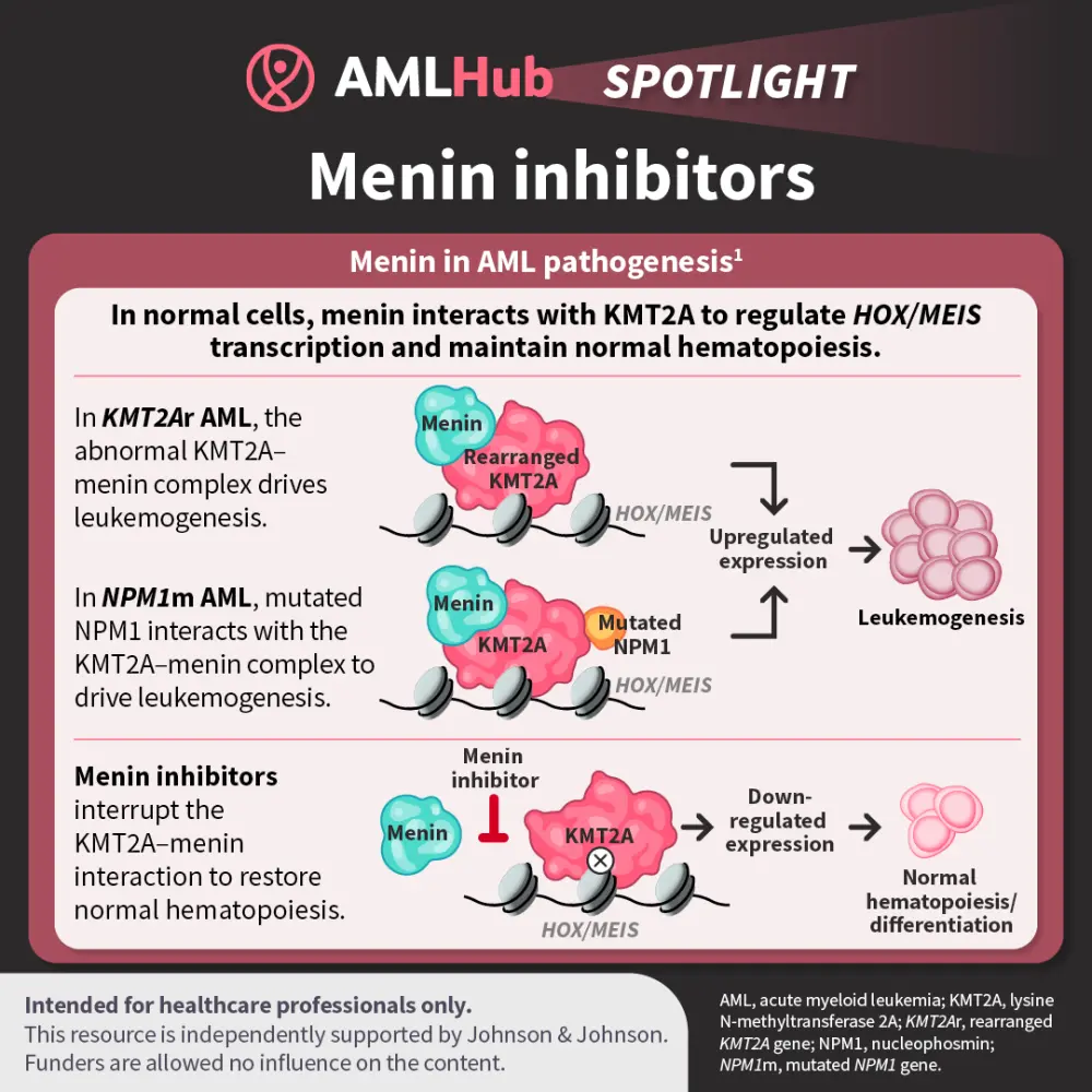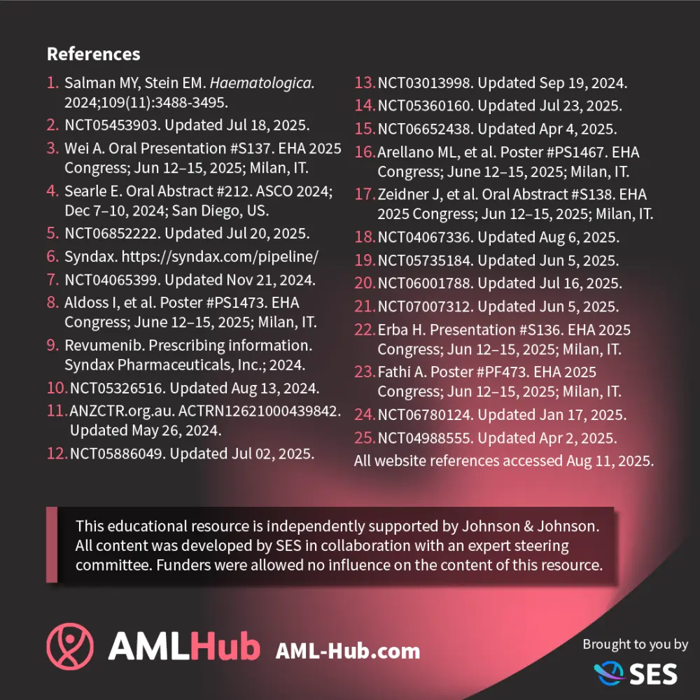 The AML Hub is an independent medical education platform, sponsored by Daiichi Sankyo, Johnson & Johnson, Syndax, Thermo Fisher Scientific, Kura Oncology, AbbVie, and has been supported through an educational grant from the Hippocrate Conference Institute, an association of the Servier Group.