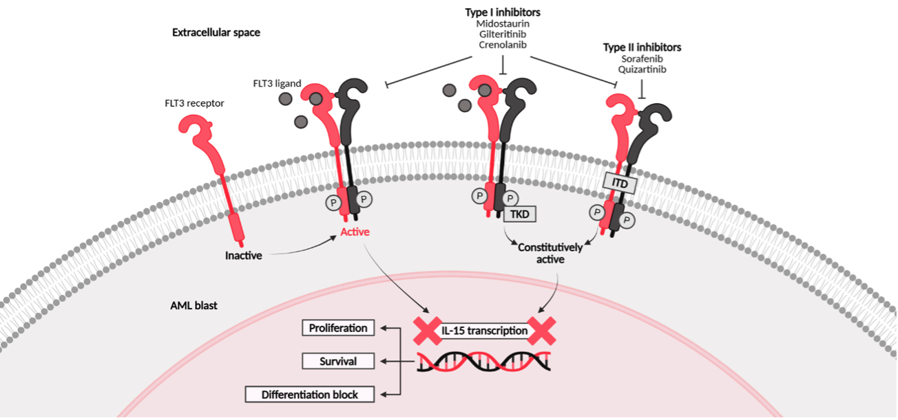 Figure 1. Mechanism of action of Type I and Type II FLT3 inhibitors1